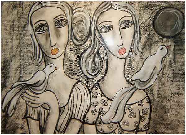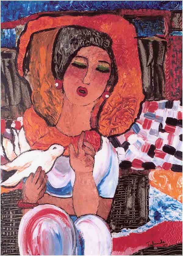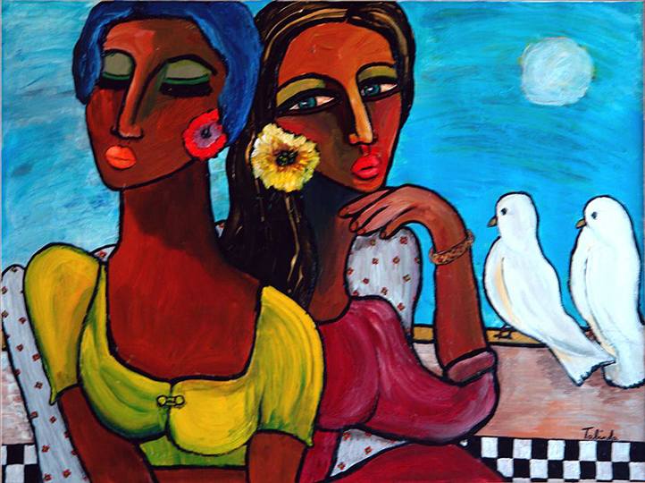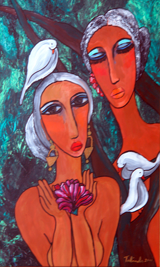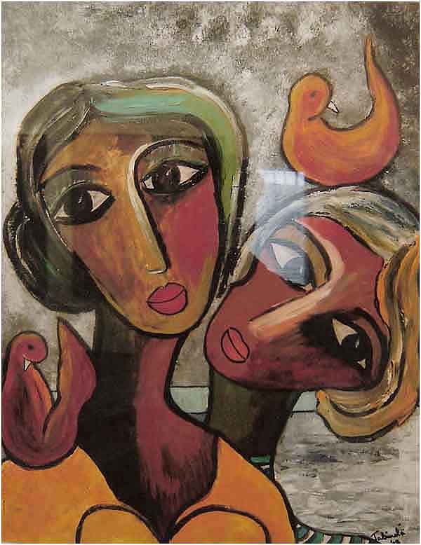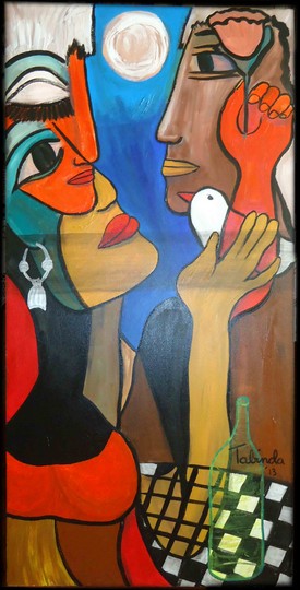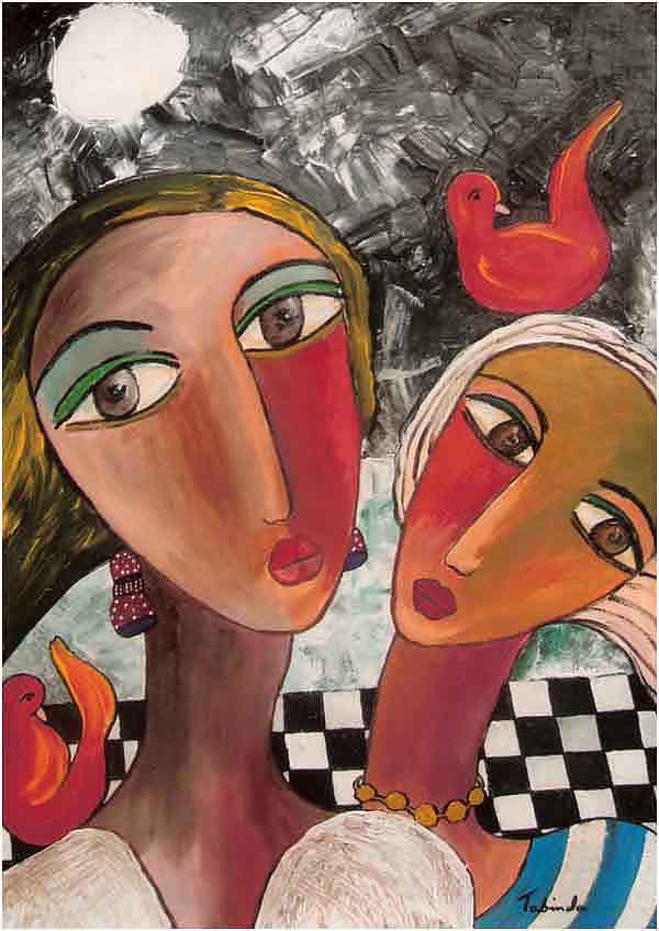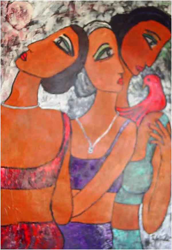 THE CASSANOVA, HIS DAMSEL, HER BIRD, Acrylic on Canvas|36"x24"