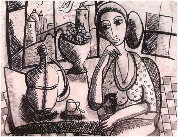 The Bird-3, Ink, Charcoal and acrylic on paper