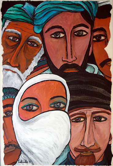 Turbanisation-4, Acrylic and Ink on canvas paper